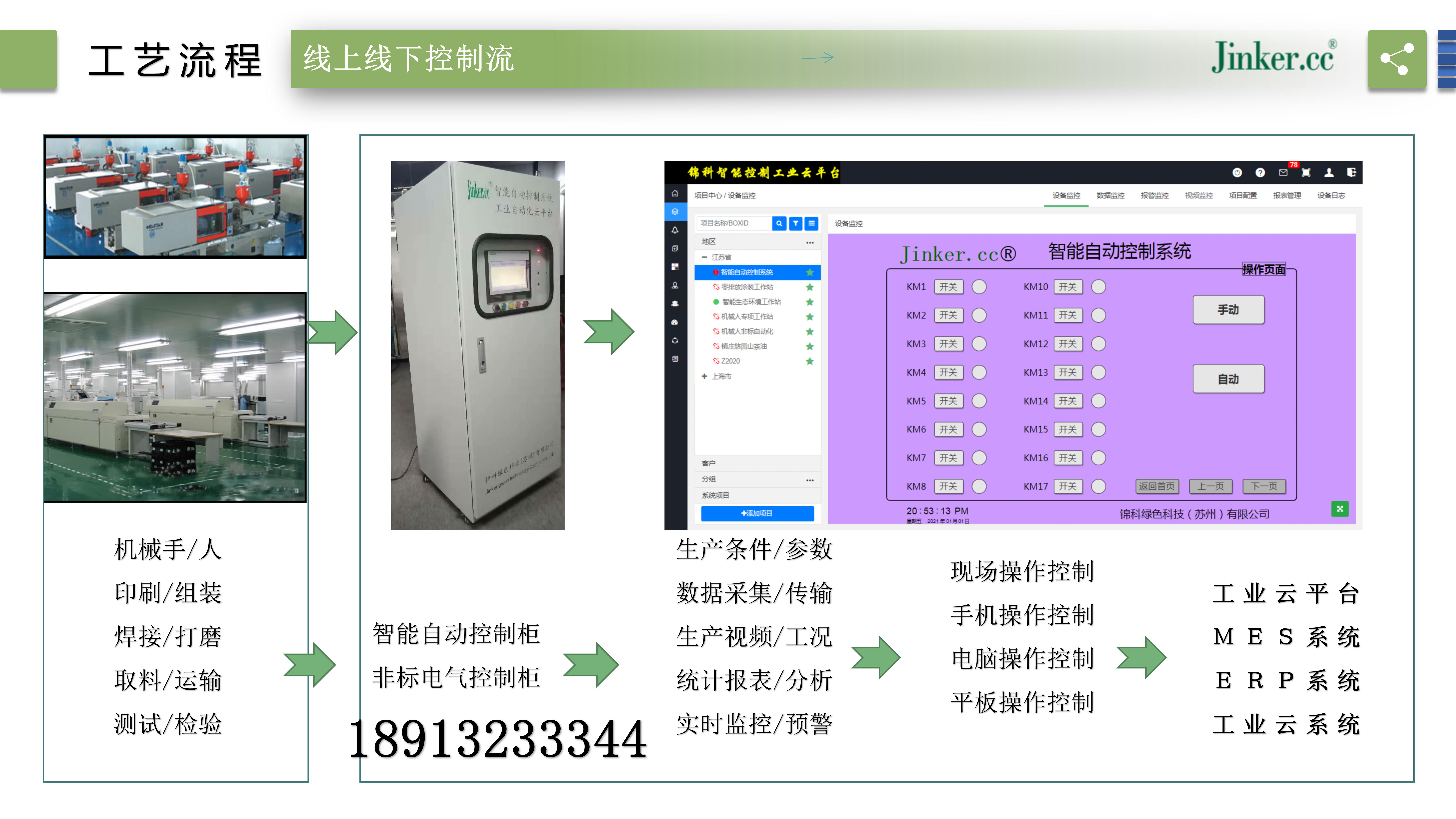 锦科工业云平台,以数字化集成、分析、监管手段为依托,结合云(云计算)、物(物联网)、数(大数据)、智(人工智能)、移(手机应用)等高新技术,使工厂的各个环节的数字化、在线化、智能化,转型升级为信息化的工厂,实现运维监管和核心业务的多级综合管理,达到线下实体工厂与线上数字工厂有效融合。